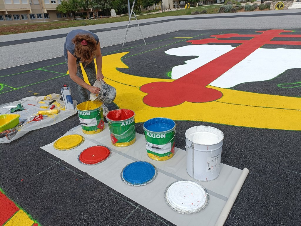 Création de deux décors monumentaux sur la place d’armes de la base.